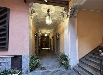 L'immobile di Via San Giovanni sul Muro è un edificio storico del centro di Milano, con facciata realizzata in mattoni a vista, decorazioni in cemento e balconi con ringhiere in ferro battuto. L'immobile si presenta come la tipica dimora storica milanese di una volta, conferendo atmosfera e fascino all'edifcio e consentendo a chi lo abita di respirare l'autenticità della vecchia Milano, pur essendo nel pieno centro della Milano moderna del fashion e del design.