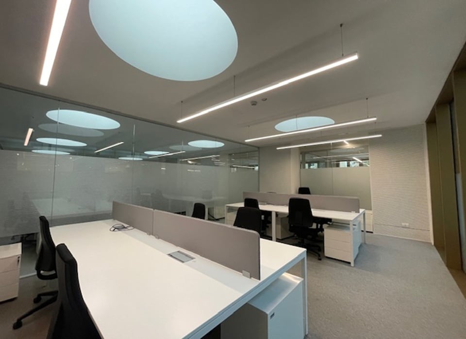 Gli uffici di Via Vittoria Colonna 4 si presentano in ottime condizioni, composti da open space, uffici singoli/multipli e sale riunioni divisi da partizioni vetrate.